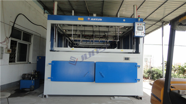 5. 周轉托盤吸塑機配置助壓柱塞,將小的褶皺引入到助壓柱塞處,或在預吹過程中用柱塞限制褶皺的產生;在成型過程中用輔助柱塞對褶皺區塑料預拉伸。