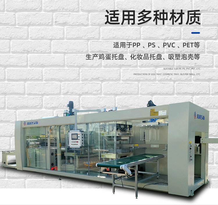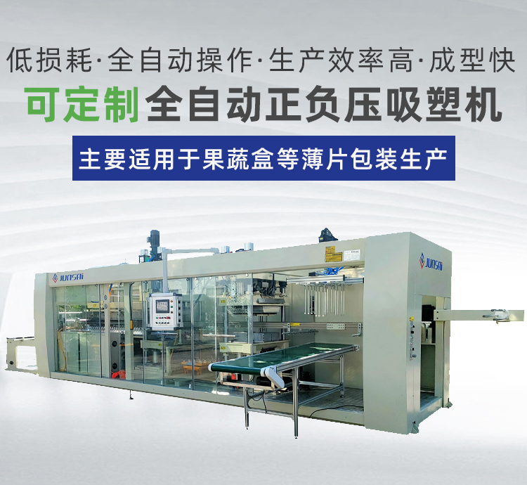 這臺全自動正負壓吸塑機適用于PS、PVC、PET、PP等塑料原材的成形,可以用來生產(chǎn)各種盒、碟、碗、電子托盤、杯蓋等塑料容器和包裝產(chǎn)品,如市面上常見的水果盒、糕點盒、保鮮盒、電子中轉(zhuǎn)托盤、玩具包裝等。